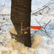 An mehreren Stationen standen Ausbilder bereit, die verschiedene Methoden zeigten, wie man einen Baum fachgerecht fällen kann. Die 'klassische' Art ist dabei sicher der Fallkerb mit anschließendem Einsatz von Keilen. Nachdem aber die Feuerwehr in der Regel keine Bäume fällen muss, die noch gerade stehen, wurde neben dem Abtragen aus der Drehleiter noch das Sichern umgefallener Bäume mit der Seilwinde des Rüstwagens gezeigt und weitere spezielle Werkzeuge verwendet.