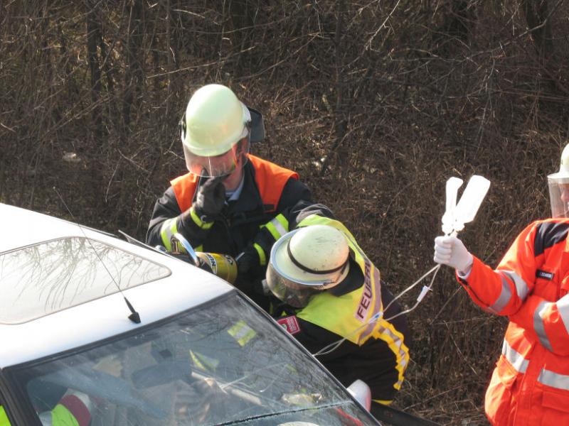 Dazu war es nötig, das Dach des PKW zu Entfernen. Bei der Entfernung des Dachs kam der hydraulische Rettungssatz, bestehend aus Schere und Spreizer, zum Einsatz. Mit einer so genannten Schaufeltrage konnte der Patient dann aus dem verunglückten Fahrzeuge gehoben werden und wurde dem Rettungsdienst übergeben.