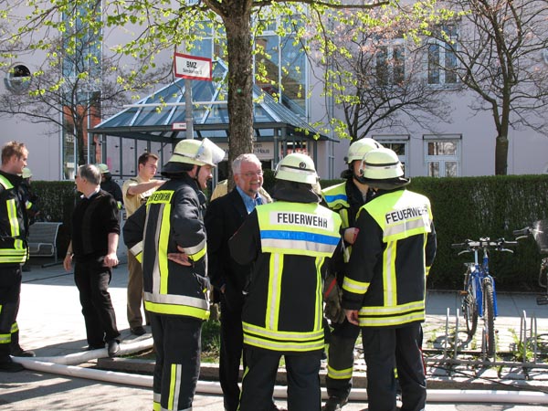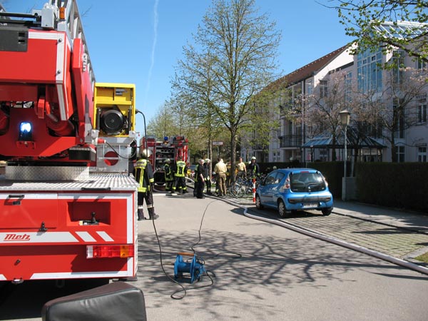 Der ausrückende erste Löschzug der Feuerwehr Haar war um 10:29 Uhr am Schadensort. Dort war bereits eine deutliche Rauchentwicklung zu erkennen. Nach der ersten Erkundung war schnell klar, dass durch das Pflegepersonal der vom Rauch betroffene Bewohnerbereich bereits geräumt war. Hier zeigte sich ein klarer Erfolg der im Sommer 2007 durch die Feuerwehr Haar durchgeführten Personalfortbildungen. Dort wurden unter anderem das Verhalten im Brandfall und die korrekte Durchführung einer Teilräumung geschult.
