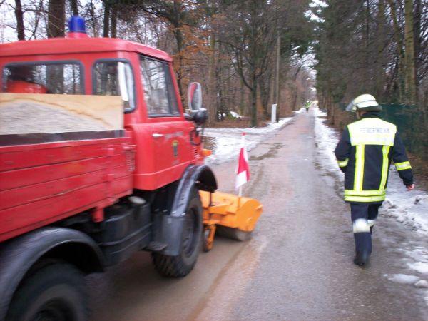 Die Feuerwehr Haar wurde alarmiert auf eine längere Ölspur zwischen Jahnstraße und B471. Es stellte sich heraus, dass die Spur vom selben Streufahrzeug verursacht wurde, das am Vortag bereits auf der Vockestraße eine längere Spur mit Hydrauliköl gelegt hatte.