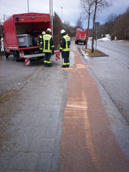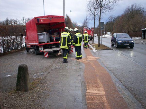 Auf einer Strecke von insgesamt etwa 700m wurde Ölbinder durch die Feuerwehr Haar aufgebracht und mit einer Kehrmaschine wieder aufgenommen.