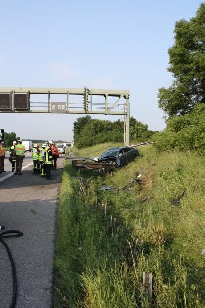 Dabei bohrte sich die Leitplanke durch das Fahrzeug und schleuderte es auf eine Wiese neben der Autobahn. Die Feuerwehr Haar wurde alarmiert, um den eingeklemmten Fahrer zu befreien. An der Unfallstelle konnte vom Notarzt des Rettungshubschraubers Christoph 1 jedoch nur noch der Tod des Fahrers festgestellt werden. Die Feuerwehr übernahm die umfangreiche Verkehrsabsicherung im beginnenden Urlauberverkehr Richtung Süden und unterstützte die Polizei und den Gutachter bei der genauen Unfallaufnahme.