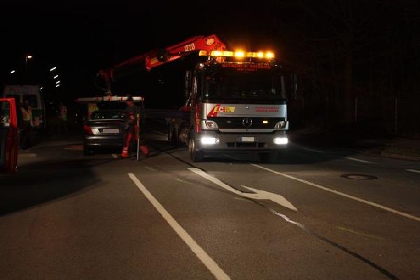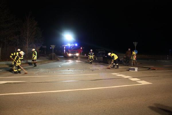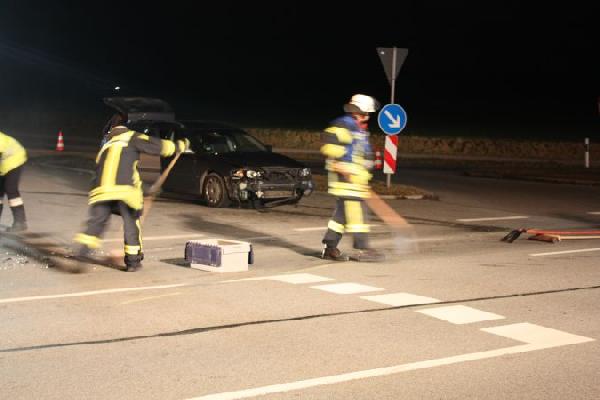 Nach der Aufnahme des Unfalls reinigte die Feuerwehr die Fahrbahn und konnte wieder abrücken.