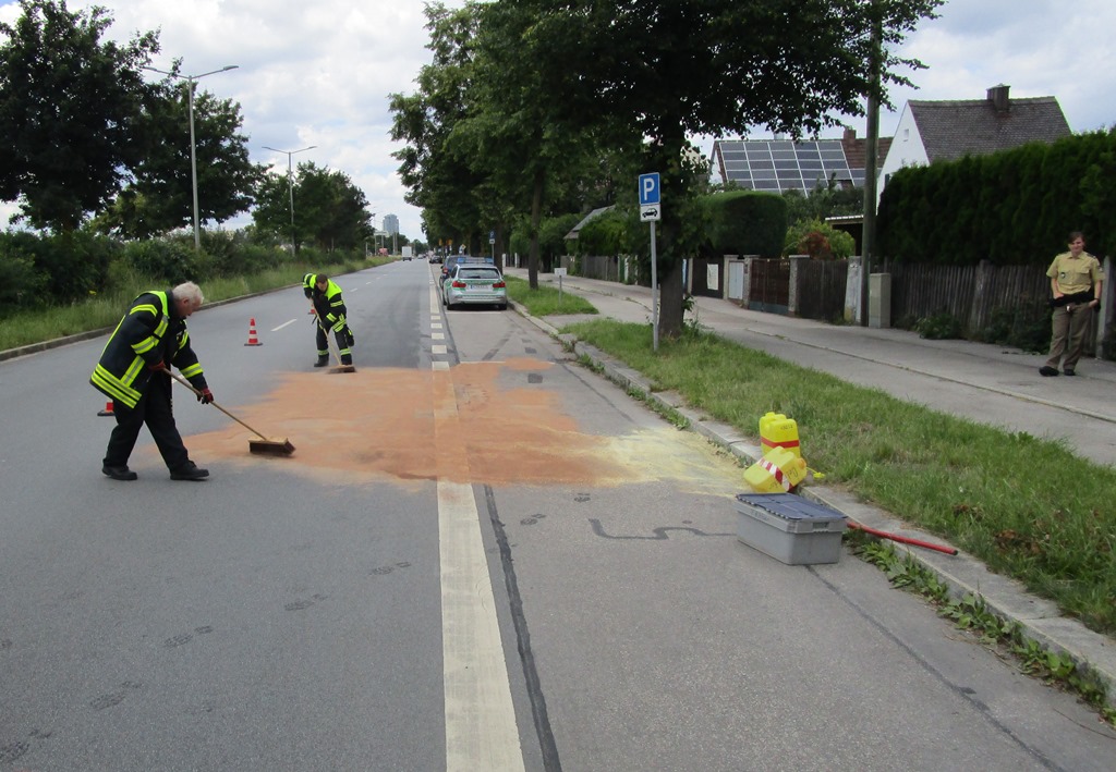 Auf einer Länge von etwa 30 Metern musste eine Ölspur gebunden werden und anschließend Warnschilder aufgestellt werden.