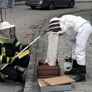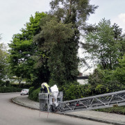 Die Feuerwehr Haar unterstützte einen Imker in der Dianastraße beim Einfangen eines schwärmenden Bienenvolkes mit der Drehleiter.