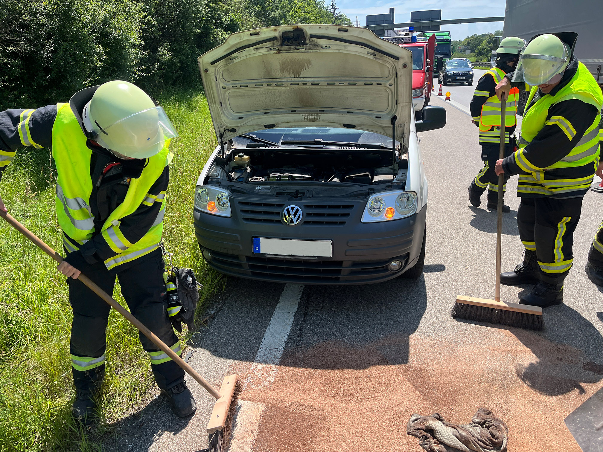 Einem PKW war der Motor geplatzt und Betriebsstoffe liefen aus. Die Einsatzkräfte der Feuerwehr Haar sicherten den PKW auf dem Standstreifen mit dem Verkehrssicherungsanhänger ab. Die Betriebsstoffe konnten mit Bindemittel aufgenommen werden. Da die Autobahnmeisterei ebenfalls alarmiert war, konnte die Feuerwehr Haar die Einsatzstelle an die Meisterei übergeben und wieder abrücken.