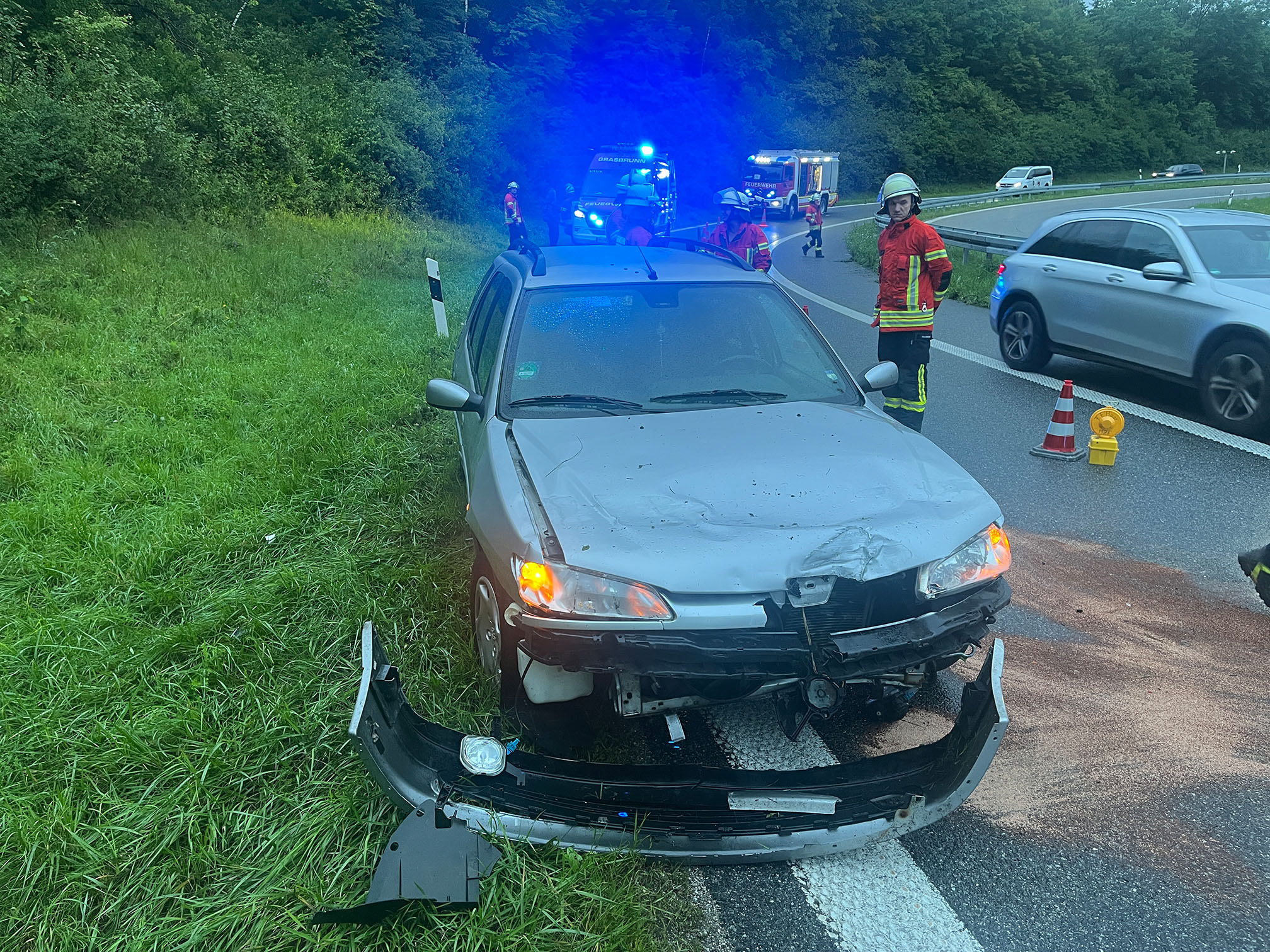 Der Fahrer des PKW hatte die Kontrolle über sein Fahrzeug verloren und war in die Leitplanke gerutscht. Er kam rechts auf der Fahrspur zum Stehen. Kurz darauf stürzte ein Motorradfahrer und prallte auf den stehenden PKW.