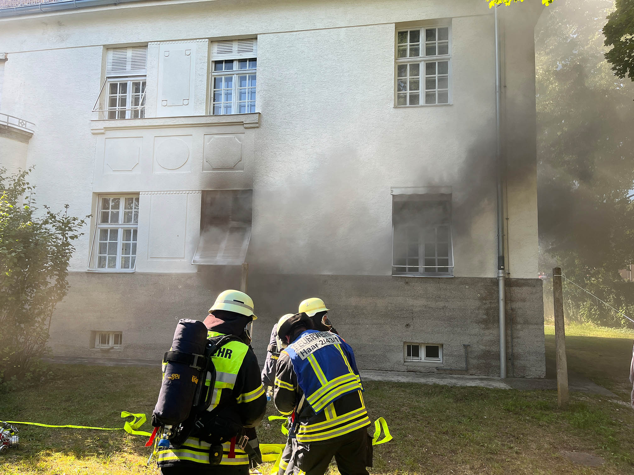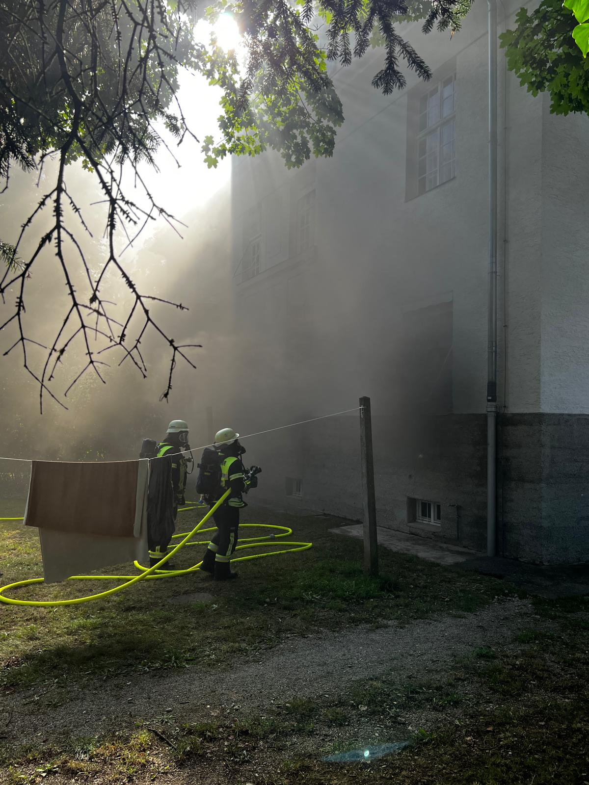 Mehrere Trupps gingen unter schwerem Atemschutz zur Brandbekämpfung und Kontrolle des Gebäudes vor. Der Brandherd konnte schnell lokalisiert und mit einem C-Rohr gelöscht werden. Zur Unterstützung kamen eine Wärmebildkamera sowie zwei Überdrucklüfter zum Einsatz.