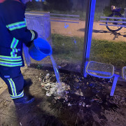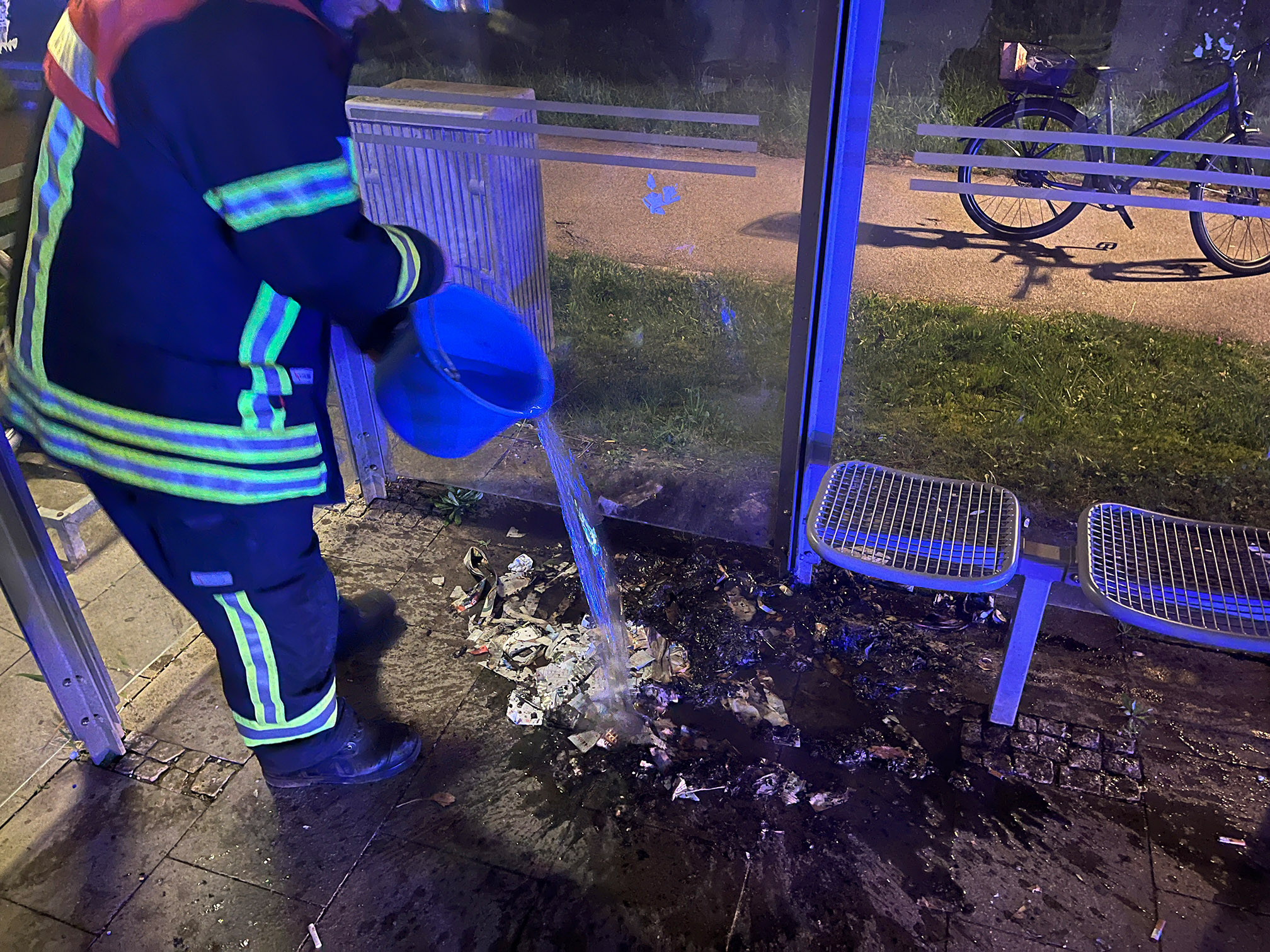 In der Bushaltestelle war ein Papierstapel in Brand. Mit einem Eimer Wasser löschten die Einsatzkräfte der Feuerwehr Haar das Feuer ab und rückten im Anschluss wieder ein.