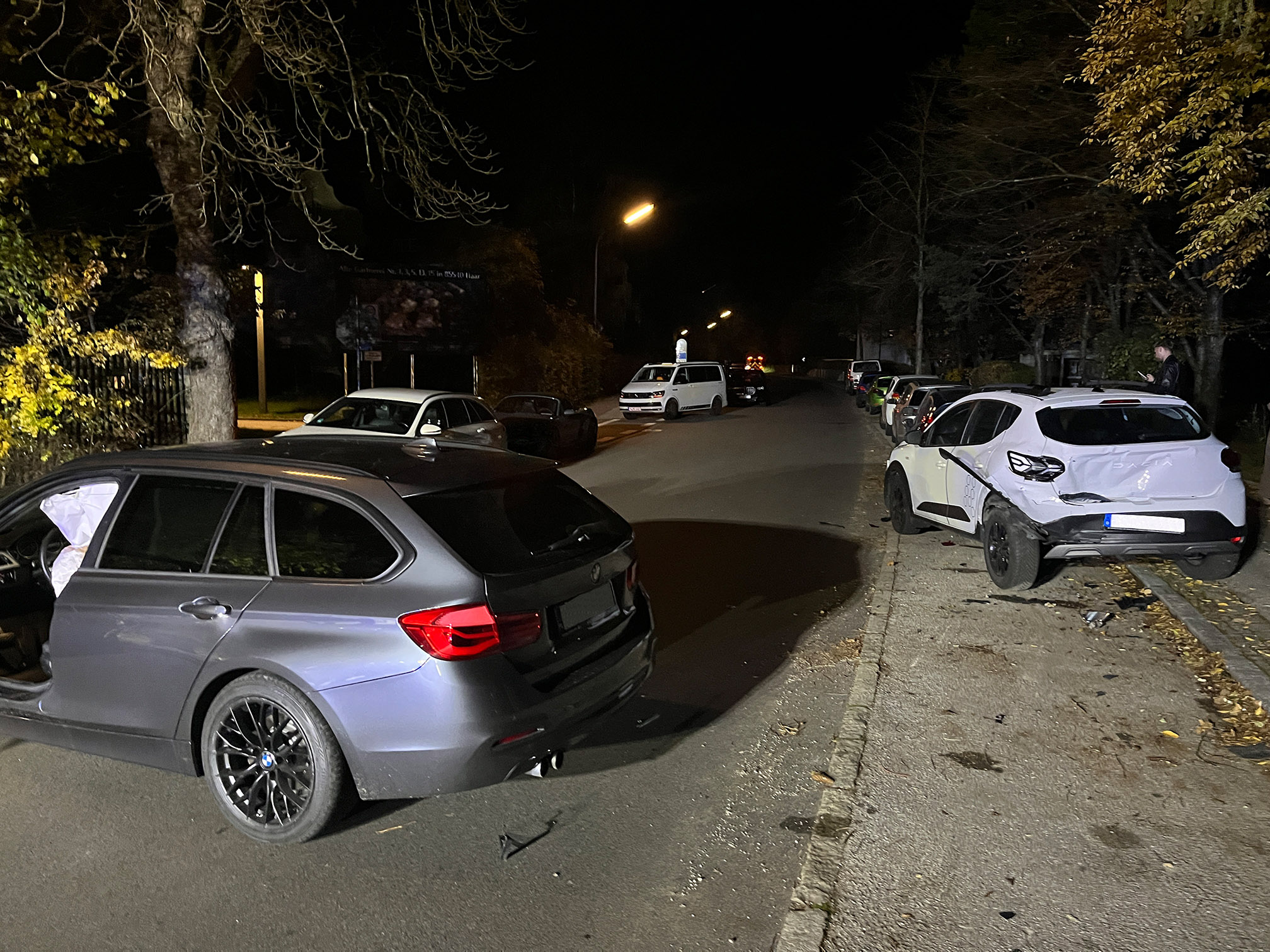 Der Fahrer eines BMW hatte in einer leichten Linkskurve die Kontrolle über sein Fahrzeug verloren und touchierte vier parkende Fahrzeuge. Erst dann kam er quer zur Fahrtrichtung auf der Vockestraße zum Stehen. Beim Eintreffen der Einsatzkräfte war keine Person im Fahrzeug, vom Fahrer fehlte jede Spur.