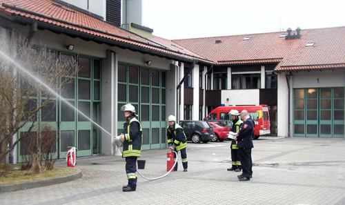 Auf dem Weg zum fertig ausgebildeten Feuerwehrmann gilt es, mehrere Prüfungen zu bestehen. Nach knapp einem Jahr wöchentlichen Übens nehmen Prüfer des Landkreises München den ersten Teil der Truppmannprüfung ab. Dabei soll jeder Prüfling in vier aus zehn möglichen Übungen zeigen, dass er das Grundhandwerk des Feuerwehrdienstes sicher beherrscht. Die Übungen umfassen die Bedienung von Kleinlöschgeräten und Zubehör, im Feuerwehralltag benötigte Knoten und Stiche ebenso wie Fahrzeugkunde und Erste Hilfe. Zehn Auszubildende der Feuerwehr Haar (Andreas Bitzer, Manuel Divoßen, Thomas Feslmayer, Markus Hofmann, Christoph Jach, Michael Krammer, Fabian Limmer, Stefan Schmidt, Benjamin Suske und Arne Seifert) sowie Oleg Hoffmann, Asbjörn Jungnik, Marc Schmidt, Albrecht Staudt und Kai Wichtlhuber von der Werkfeuerwehr des Bezirkskrankenhauses (BKH) bestanden diese Prüfung am Montag, den 03. April gemeinsam mit den Teilnehmern der Freiwilligen Feuerwehr Grasbrunn (Martin Lechler, Andreas Kahlhammer, Susanne Kinkel, Armin und Thomas Schmidt, Monika und Ulrich Unterbichler und Peter Wisheu).