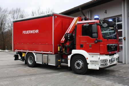 Zur Stromversorgung an der Einsatzstelle verfügt der V-LKW über eine Dynawattanlage mit einer Leistung von 4000 Watt. In den Staufächern sind Anschlagmittel für den Kran, Zurrmaterial für die Ladefläche sowie Material zur Verkehrsabsicherung verlastet. Die Ausrüstung mit Sondersignalanlage, Funkausrüstung, Heckabsicherung und Umfeldbeleuchtung erfolgte durch die Firma Furtner&Ammer in Landau.