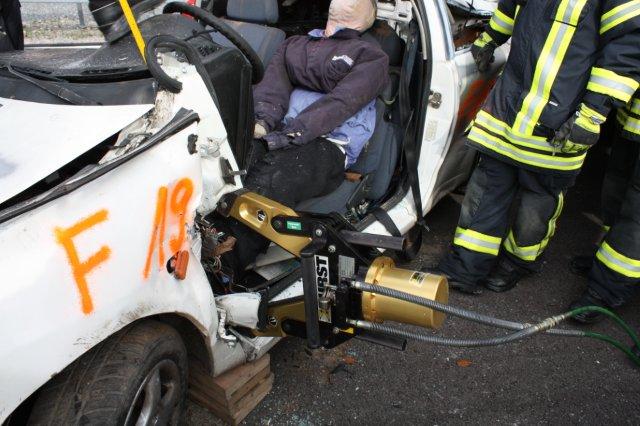 Nach der Mittagspause erwartete die Einsatzkräfte aus Haar ein Verkehrsunfall auf der A999 zwischen einem PKW und einem LKW, bei dem zwei Personen im PKW eingeklemmt wurden. Der Zugführer der Feuerwehr Haar entschied sich zur Aufteilung in zwei Gruppen: Eine übernahm die Rettung der Personen aus dem PKW, die andere kümmerte sich um die Absicherung der Einsatzstelle und die Personenbetreuung. Die Rettung des Fahrers aus dem PKW gestaltete sich als schwierig, er war schwer eingeklemmt und musste mit Rettungsschere und Spreizer aus dem Fahrzeug freigeschnitten werden.