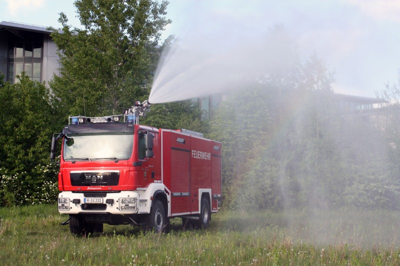 Am Dach des Gerätemoduls ist der Schaum/Wasserwerfer mit Hohlstrahldüse und einer max. Leistung von 2.400 l/min aufgebaut. Am Werfer sind 2 St. Xenon-Scheinwerfer montiert, die eine Ausleuchtung der Zielfläche ermöglichen. Der Werfer ist vollständig funkfernbedienbar mit den Funktionen „Arbeitsstellung“ - „Parken“, Leistungsumschaltung „800 l/min“ – „2.400 l/min“, „Vollstrahl“ – „Sprühstrahl“, sowie die stufenlose horizontale als auch vertikale Werferbewegung. Weiter kann mit der Fernbedienung die Feuerlöschkreiselpumpe und Schaumzumischung geschaltet werden.