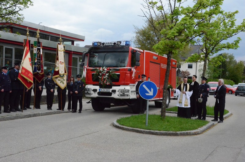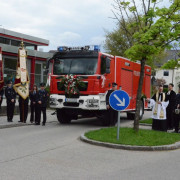 Nach dem Gottesdienst in der Jesuskirche folgte die Weihe des neuen Tanklöschfahrzeuges TLF 4000 vor der Kirche, das anschließend von Bürgermeister Helmut Dworzak offiziell an die Feuerwehr übergeben wurde.