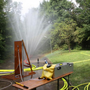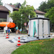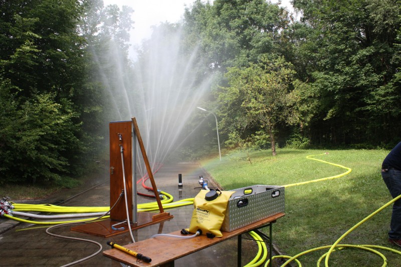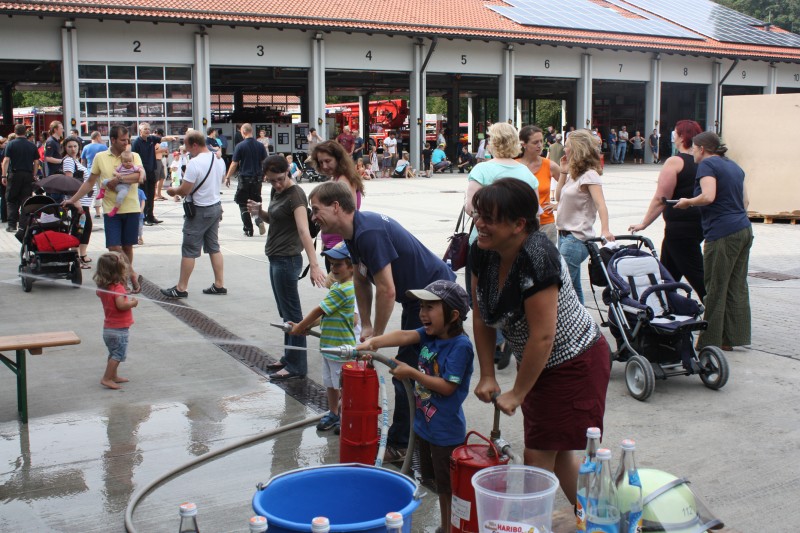 Bei sommerlichen Temperaturen gab es für die Kinder einen „Wasserspielpark“ mit vielen Strahlrohren und Schläuchen. Das neue Tanklöschfahrzeug, das seit vergangenem Jahr im Einsatzdienst ist, zeigte die unterschiedlichsten Löscheinrichtungen: Angefangen von Düsenschläuchen über die Waldbrandausrüstung bis hin zu den beiden Wasserwerfern.