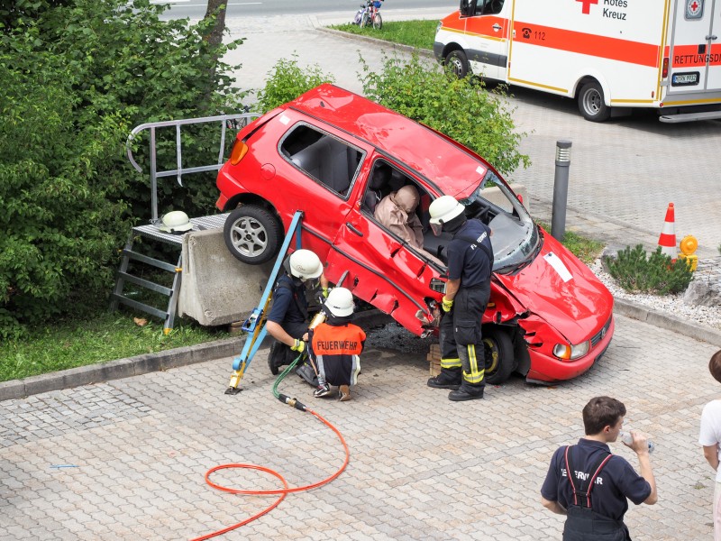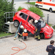 An verschiedenen Ständen konnten die Besucher die Geräte auch selber in die Hand nehmen und unter Anleitung ausprobieren, wie z.B. eine Rettungsschere bei einem simulierten Verkehrsunfall.