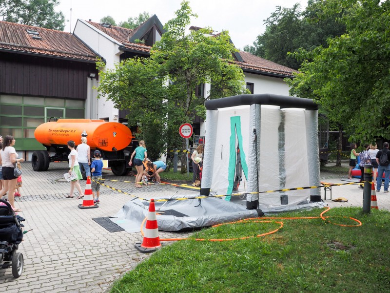Zwischen 500 und 1.000 Besucher kamen über den Tag verteilt in das Gelände an der Vockestraße in Haar und sahen die verschiedenen Möglichkeiten von Feuerwehr, ABC-Zug, Technischem Hilfswerk (THW), dem Roten Kreuz und der Polizei.