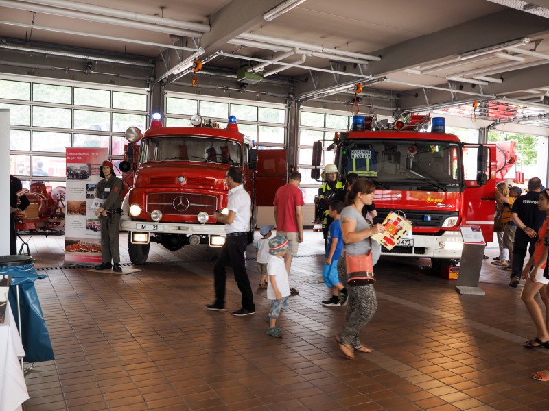 Außerdem wurde die Geschichte der Feuerwehr mit alten Uniformen und unterschiedlichen Geräten von der Robel-Spritze (Baujahr 1933) über das erste Tanklöschfahrzeug (Baujahr 1964) bis zum modernen Löschfahrzeug gezeigt. Wer Lust hatte, konnte sich auch bei einer Führung durch die Feuerwache Informationen über die Ausbildung bei der Feuerwehr holen und sich seine ganz persönlichen Fragen beantworten lassen.