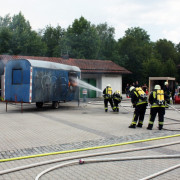 Ein gemeinsamer Biergarten sorgte für Abkühlung und Erholung, bevor Vorführungen der Feuerwehr auf dem Programm standen. Dabei wurde der Einsatz bei Bränden gezeigt oder die Explosion von Spraydosen und eine Fettexplosion.