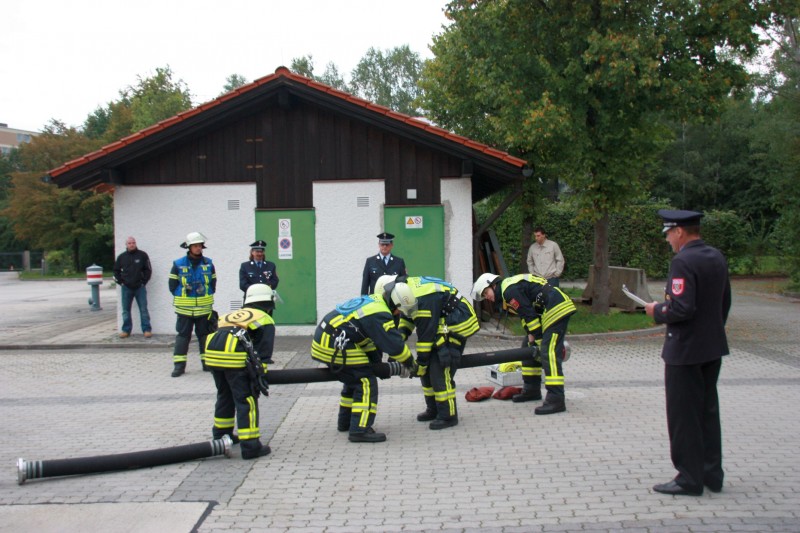 Neben diesen beiden Übungen müssen noch Zusatzaufgaben und Knoten und Stiche gezeigt werden, die zum Grundwissen eines jeden Feuerwehrlers gehören. Auch beim zweiten Termin am 15. September musste der korrekte Löscheinsatz gezeigt werden.
