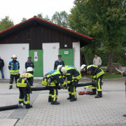 Den Abschluss machten die Prüfungen zum Hilfeleistungseinsatz, die gleich drei Gruppen am 29. September vor den Schiedsrichtern des Landkreises ablegten. In dieser Prüfung muss in 240 Sekunden eine Personenrettung aus einem verunfallten Fahrzeug mit Rettungsspreizer und -schere durchgeführt werden. Auch hier ist die Absicherung der Einsatzstelle und das Sicherstellen des Brandschutzes sowie erste Hilfe Pflicht.
