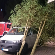 Der erste Anruf ging gegen 22:00 Uhr bei der Feuerwehr ein, als ein Anwohner meldete, dass bei ihm im Vorgarten ein Baum umgefallen sei. Dann ging es Schlag auf Schlag und weitere umgeknickte Bäume, umgekippte Anhänger und ein Schaden am Dach eines Hochhauses im Jagdfeld wurden gemeldet. Diese Einsätze beschäftigten die Einsatzkräfte bis in die frühen Morgenstunden.