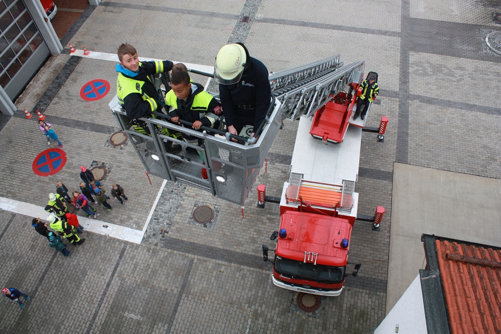 Nach dem anschließenden Kakao und Kuchen wurde auch noch der Traum eines jeden Kindes erfüllt: Mit der großen Drehleiter ging es hoch hinauf. Alle Kinder bewiesen dabei Mut und Schwindelfreiheit – absolute Grundvoraussetzungen für gute Feuerwehrleute.