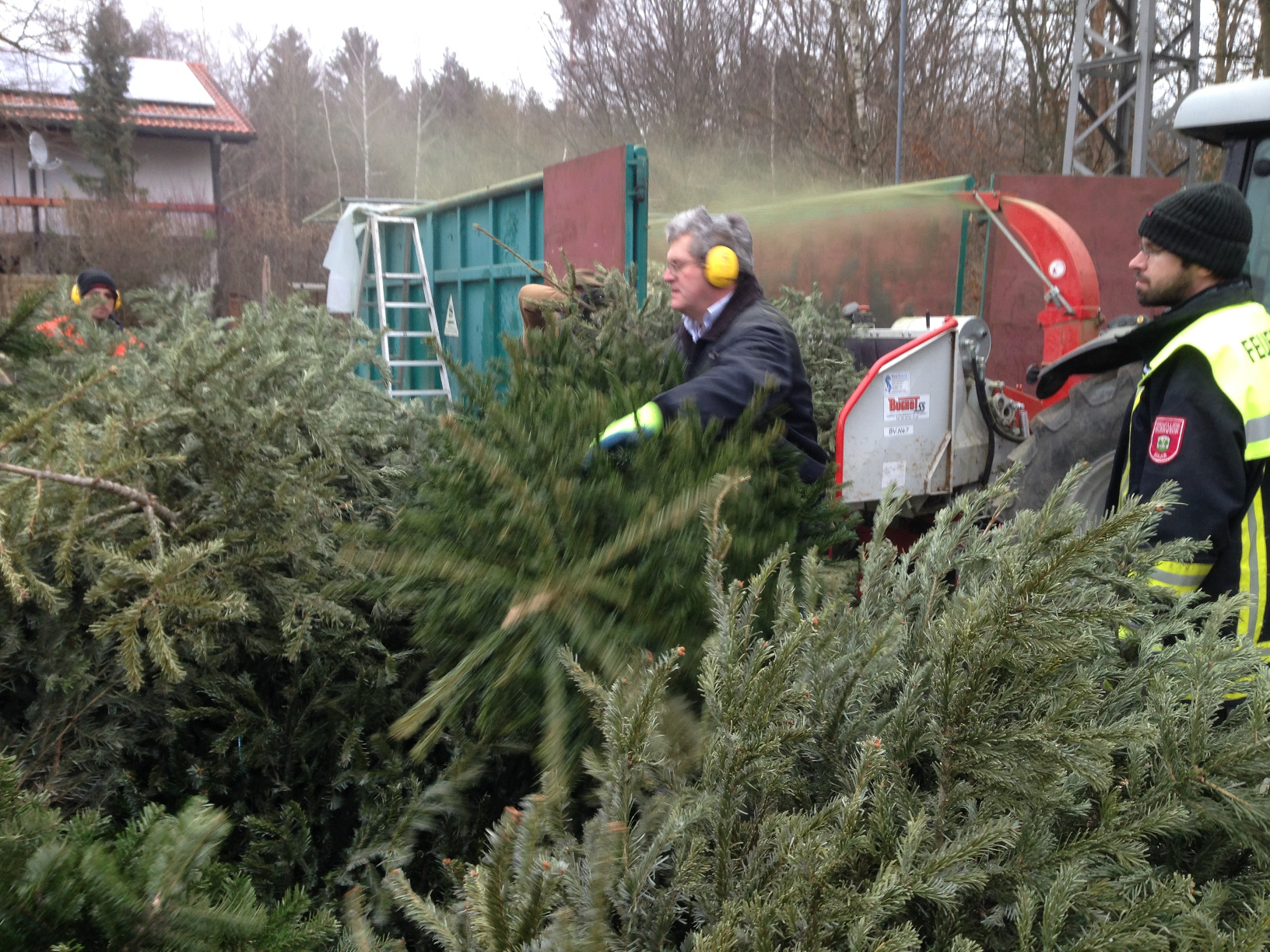 An 10 Stationen standen wieder die Helfer bereit, um die Bäume entgegen zu nehmen, ein Service der seit über 20 Jahren in Haar angeboten wird. Die Bäume, egal ob groß oder klein, werden dann direkt in einem Großhäcksler gesteckt und geschreddert.