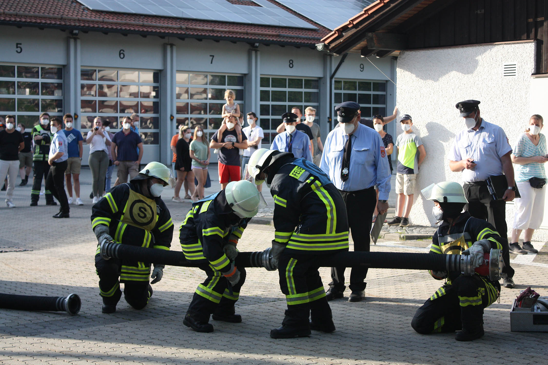 In den Zeiten der Beschränkungen war es nicht gerade einfach, eine vernünftige Vorbereitung auf die anstehende Prüfung zu gewährleisten. Die Teilnehmer stecken alle noch in ihrer Grundausbildung und dazu gehört bei der Feuerwehr Haar auch das Ablegen einer Leistungsprüfung. Um so schöner ist das Ergebnis, einmal komplett fehlerfrei, einmal mit einem kleinen Patzer, eine hervorragende Leistung.