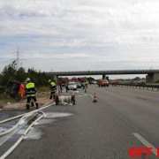 Am Freitag Vormittag kam es auf der A99 Richtung Salzburg zu einem Verkehrsunfall bei dem ein mit LKW-Anhänger umstürzte welcher zwei Behälter mit Aceton geladen hatte.