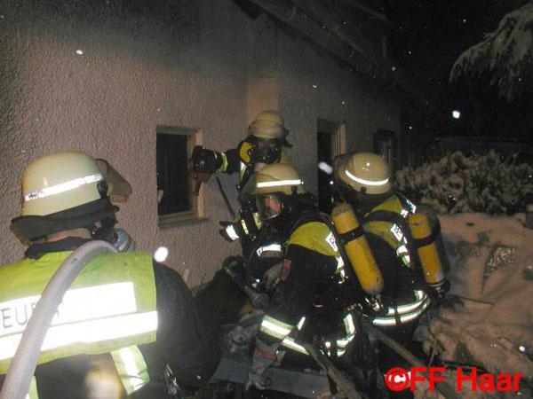 Zu einem Zimmerbrand in einem Einfamilienhaus wurde die Feuerwehr Haar am Sonntag, 19.12.04 gegen 17:30 Uhr alarmiert.