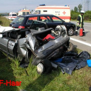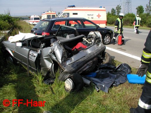 Die Feuerwehr Haar befreite zuerst die Verletzte aus Ihrem PKW und musste dabei mit mehreren Spreizern und hydraulischen Rettungsgeräten arbeiten. Erst nachdem das Dach des PKW vollständig abgetrennt wurde, konnte die Frau schonend aus Ihrem Fahrzeug gerettet werden und wurde einem Notarzt zur Behandlung übergeben. Der Bewusstlose wurde vom Rettungshubschrauber abtransportiert.