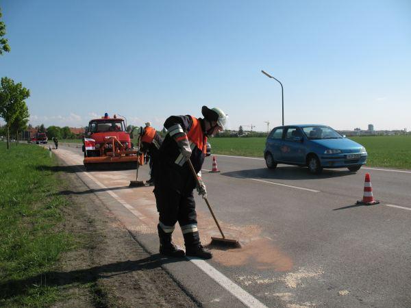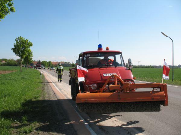 Insgesamt waren für die Kehr- und Absperrarbeiten 32 Kräfte der Feuerwehr Haar, sowie Polizei und die Autobahnmeisterei Hohenbrunn knapp zwei Stunden im Einsatz.