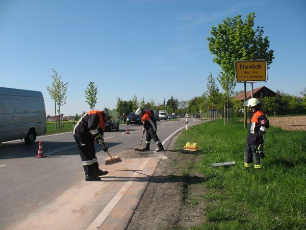 Die Feuerwehr Haar rückte aus, um am Ortseingang Ottendichl eine ca. 100 Meter lange Spur aufzunehmen. Zusätzlich mussten noch auf der B471 auf Höhe der Tannenhofsiedlung bis hin zur Kreuzung mit der B304 und an der Kreuzung zur Leibstraße weitere Ölspuren mit einer Länge von ca. 100 Metern aufgenommen werden.