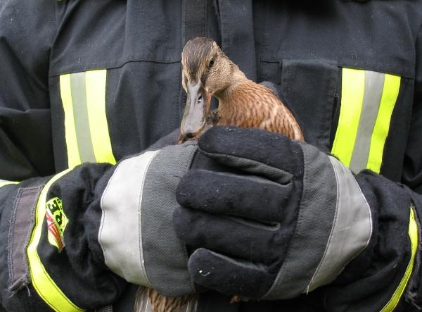 Die Feuerwehr Haar wurde zu einer in Not geratenen Entenfamilie in die Gronsdorfer Straße alarmiert. Eine Mutter mit vier Jungtieren hatte sich in einen Carport verirrt und konnte diesen nicht mehr aus eigener Kraft verlassen. Die Tiere wurden von der FF Haar eingefangen und in einem Naherholungsgebiet in einer Nachbargemeinde wieder ausgesetzt.