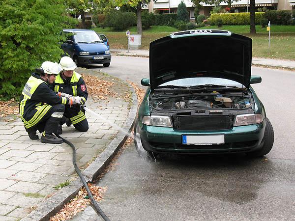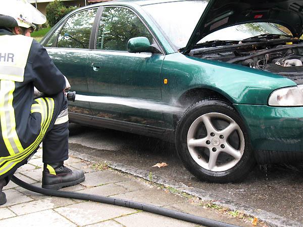 Im Hubertusweg wurde ein brennender PKW gemeldet. Die alarmierten Einsatzkräfte aus Haar stellten beim Eintreffen fest, dass die Bremse eines PKW vorne rechts blockiert hatte und dadurch extrem heiß gelaufen war. Nach umfangreichen Kühlmaßnahmen am Vorderreifen und der Bremsanlage konnte die Feuerwehr Haar wieder abrücken.