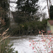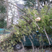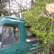 In der Defreggerstraße war ein Baum infolge der zeitweise starken Windböen umgestürzt. Dabei wurde ein Kleintransporter darunter begraben und die angrenzende Garage beschädigt.
