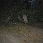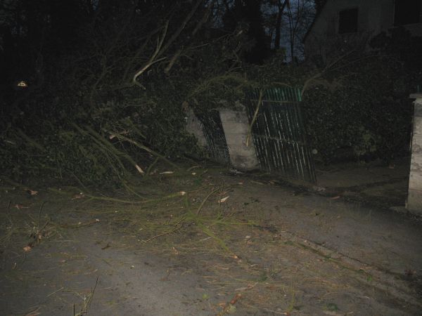 Im angrenzenden Grundstück des vorangegangenen Alarms stürzte ein weiterer Baum um und blieb quer über der Waldluststraße liegen.
