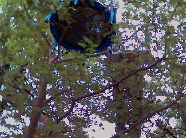 Am Bahnhofsplatz war durch den Sturm während des Unwetters der vorangegangenen Nacht ein Trampolin vom Balkon in einen Baum geweht worden. Da durch das Trampolin eine Gefährdung des darunterliegenden Gehweges ausging, rückte die Feuerwehr Haar mit der Drehleiter an, um es zu bergen.