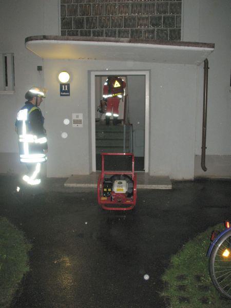 Die FF Haar wurde in die Waldluststraße gerufen. Dort war ein Plastikgesteck vermutlich vorsätzlich in Brand geraten. Das Feuer war bei Ankunft der Feuerwehr bereits aus, jedoch musste das Treppenhaus mit einem Turbolüfter vom Rauch befreit werden, sowie eine Person mit Kreislaufschwierigkeiten bis zum Eintreffen des Rettungsdienstes von den Kräften der Feuerwehr versorgt werden.