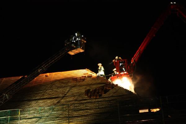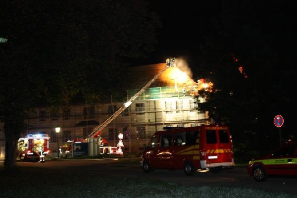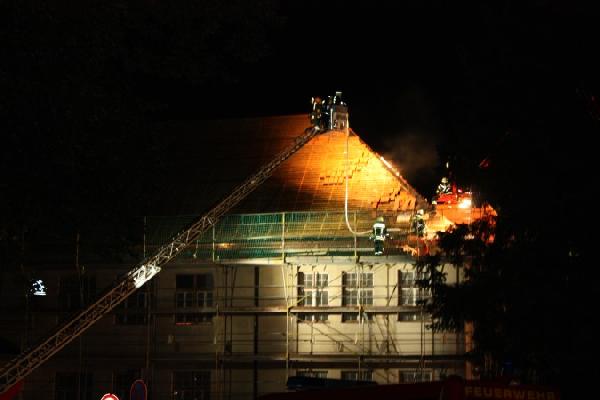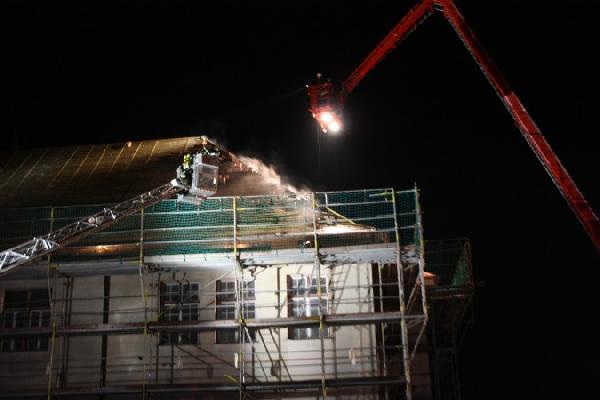 Das Dach mußte großflächig geöffnet werden, um den genauen Brand lokalisieren und ablöschen zu können. Für Personen bestand zu keiner Zeit Gefahr, da das Gebäude aufgrund von Umbaumaßnahmen unbelegt war.