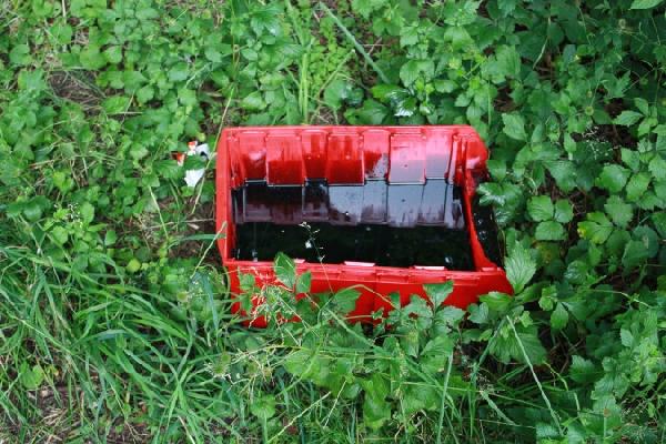 Vor Ort fand sich ein offener Behälter mit etwa 10 Litern Altöl vor. Die Feuerwehr benachrichtigte die Polizei und füllte das Öl für die Entsorgung um.
