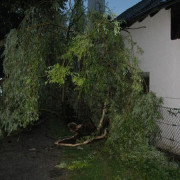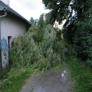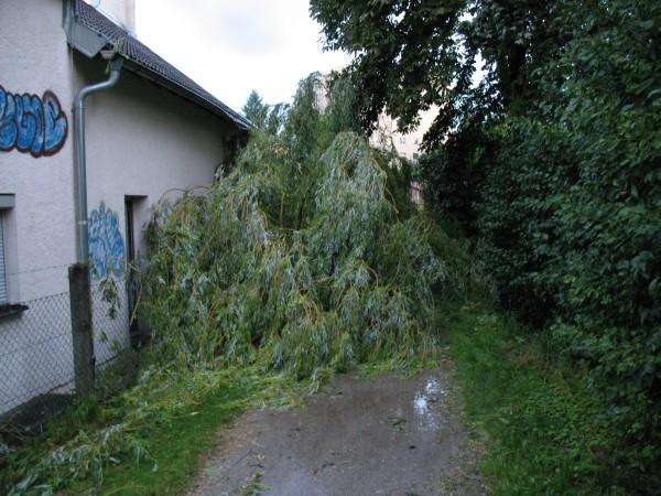 In der Bibingerstraße war ein Baum auf das Dach eines Gewerbegebäudes gefallen.