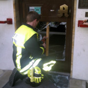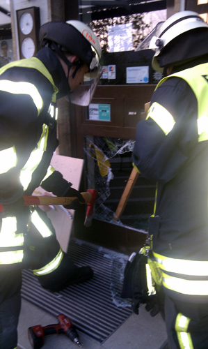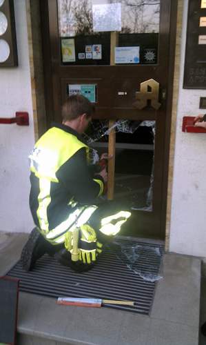 Die Polizei forderte die Feuerwehr Haar an, um die Tür zu verschalen und gegen unbefugtes Betreten zu sichern.