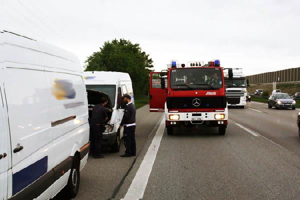 Auf Anfahrt konnte die Polizei bereits Entwarnung geben, dass es sich lediglich um einen Kleintransporter handelte, der aufgrund eines technischen Defektes geraucht hatte. Die Feuerwehr kontrollierte das Fahrzeug, das auf dem Seitenstreifen stand, ohne weitere Feststellung. Somit war für die Feuerwehr kein weiteres Eingreifen erforderlich.