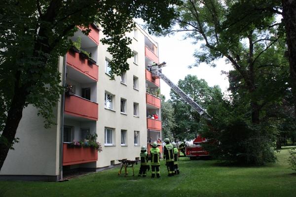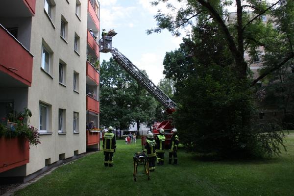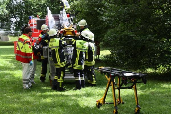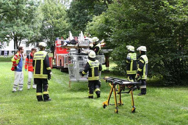 Der Rettungsdienst forderte die Drehleiter der Feuerwehr Haar in die Vockestrasse nach.