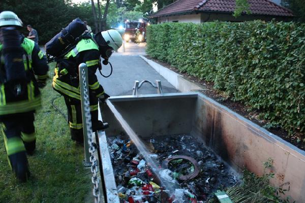 Die Feuerwehr Haar wurde zu einem Containerbrand beim Waldfriedhof in der Defreggerstraße alarmiert. Dort hatten sich Abfälle unterschiedlicher Art in einem Abrollcontainer entzündet. Bei Eintreffen der Einsatzkräfte brannte das Abfallgut offen und wurde unter Atemschutz gelöscht.