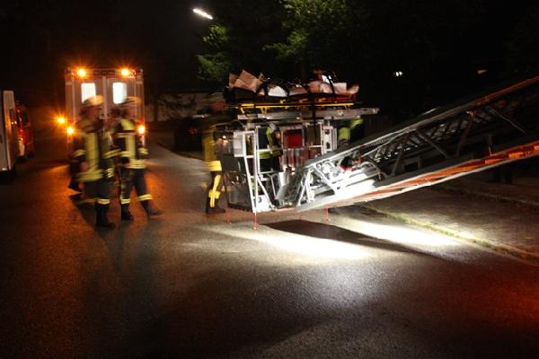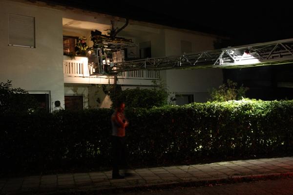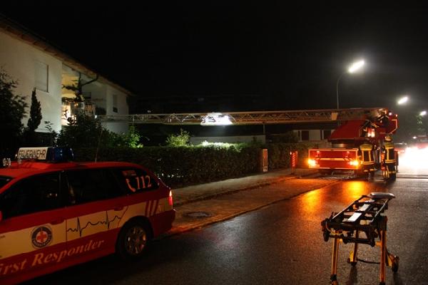 Der Rettungsdienst forderte die Drehleiter der Feuerwehr Haar in die Ferdinand Kobell Straße nach.