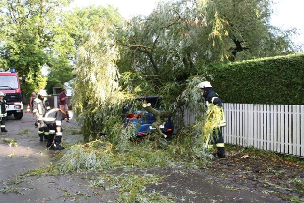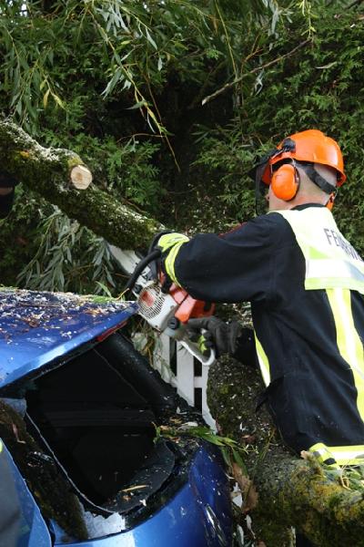 Die Feuerwehr Haar wurde zu einem umgestürzten Baum in die Brünsteinstraße nach Gronsdorf alarmiert. Dieser hatte einen PKW unter sich begraben. Die Feuerwehr entfernte den Baum und übergab die Einsatzstelle danach an die Polizei.